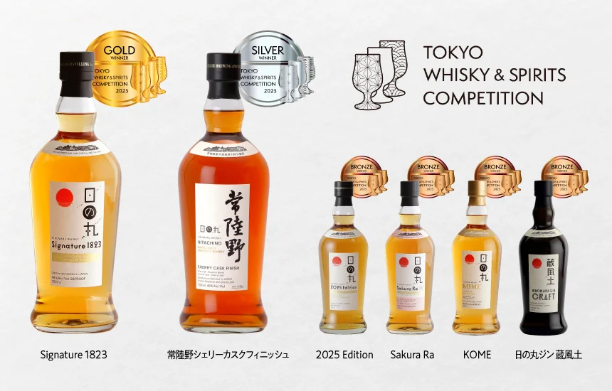 木内酒造株式会社(茨城県那珂市)は、日本で開催されるアジア最大級の蒸留酒の品評会「東京ウイスキー&スピリッツコンペティション」(以下TWSC2025)において、「日の丸ウイスキー」および「日の丸ジン」計6商品が受賞しました。今回の受賞では「Signature 1823」【金賞】を含む日の丸ウイスキー5商品に加え、「日の丸ジン 蔵風土」も【銅賞】を受賞し、ウイスキー・ジンの両部門で高い評価を獲得いたしました。